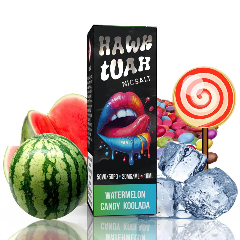 Hawk Tuah Salt - Watermelon Candy Koolada je osvěžující e-liquid s chutí sladkého vodního melounu a bonbonu, doplněný chladivým koolada efektem. Ideální pro ty, kteří hledají intenzivní a chladivý vapingový zážitek s ovocnou sladkostí.
