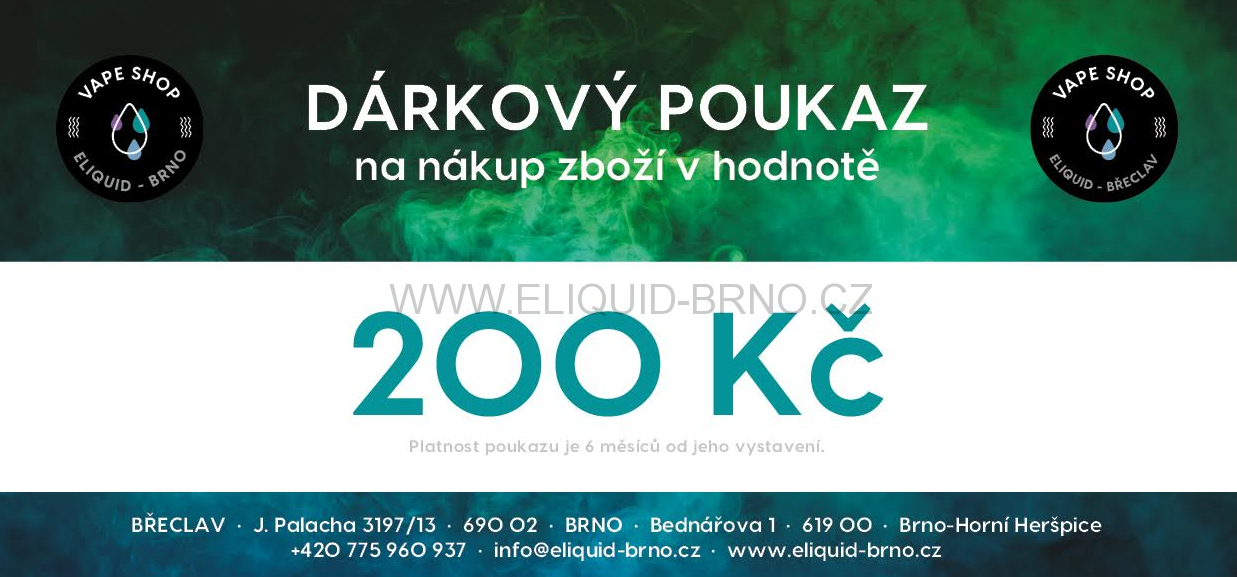 Zakoupením tohoto produktu získáte tištěný poukaz na nákup zboží na našich prodejnách Eliquid-Brno a Eliquid-Břeclav v uvedené hodnotě.