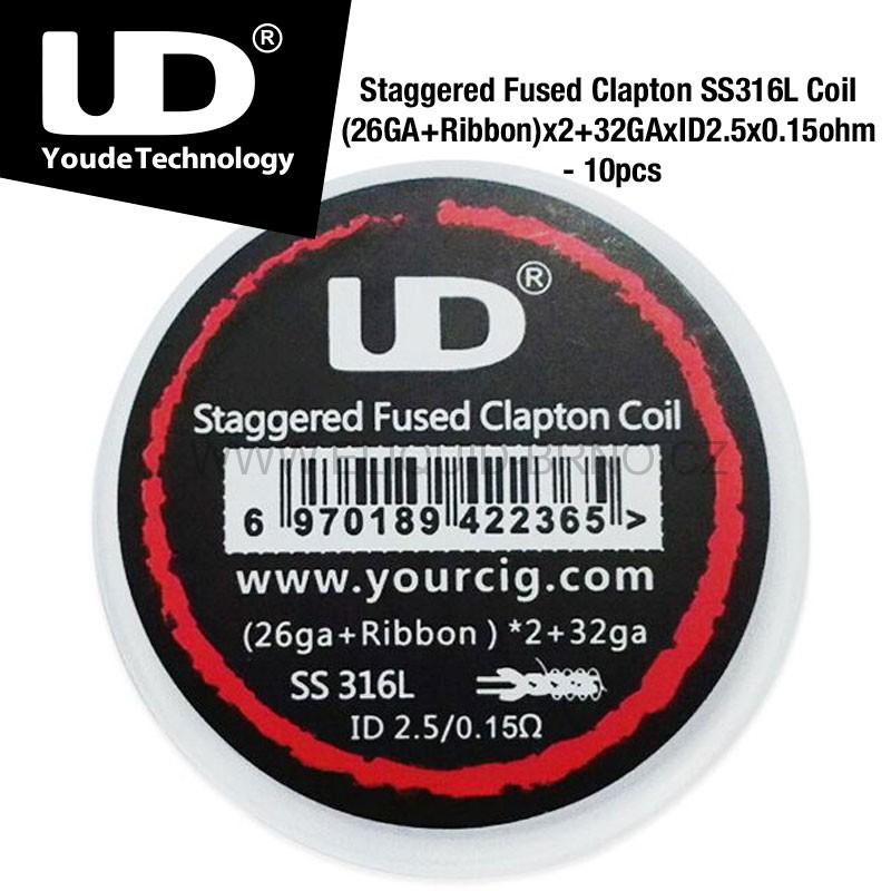 UD - Staggered Fused Clapton SS316L Coil (26GA+Ribbon)X2+32GA 0.15ohmSkladem19 Kč/ ks16 Kč bez DPH