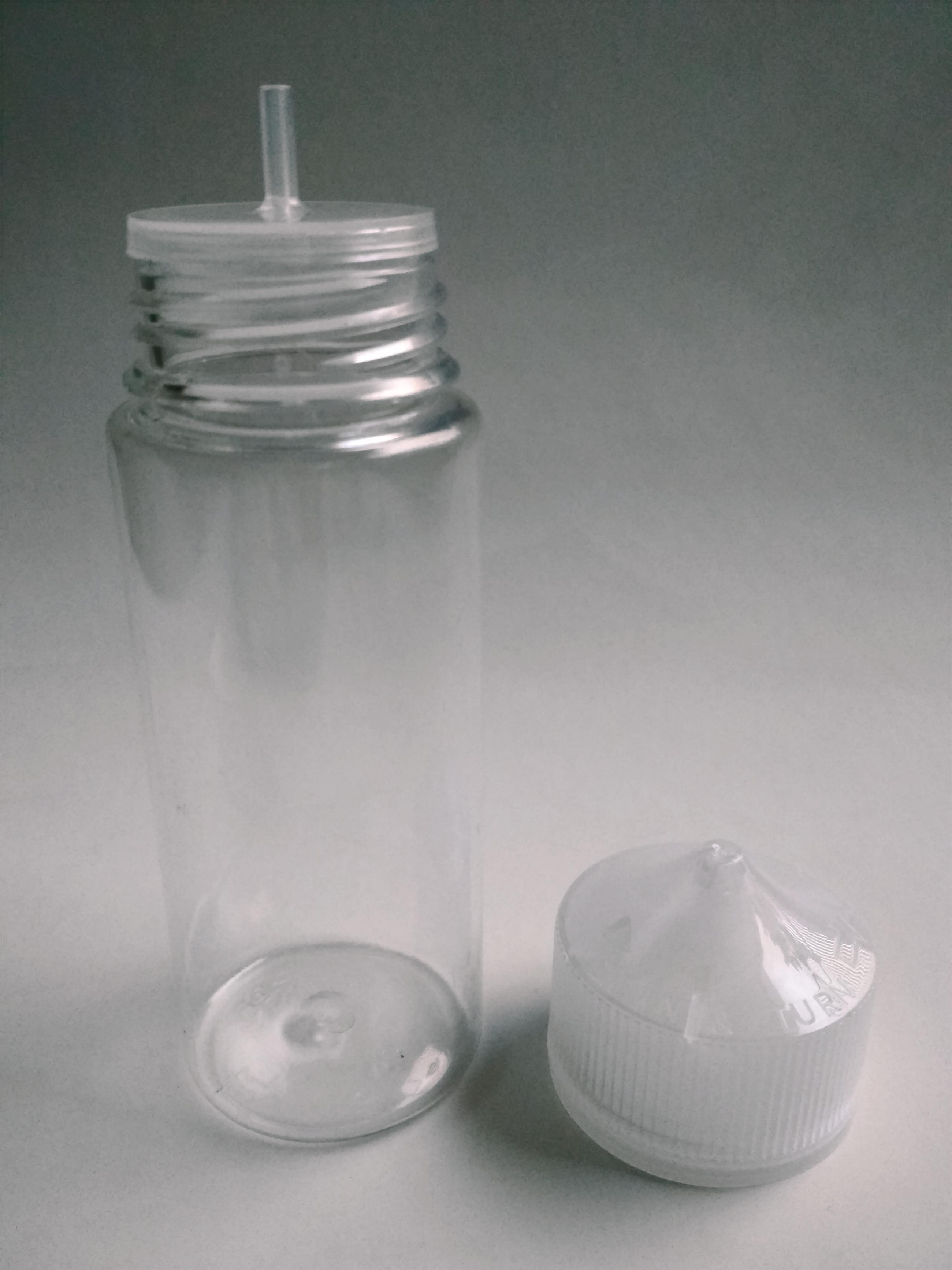 Lahvička ve stylu Chubby Gorilla s přesazeným kapátkem a uzávěrem s dětskou pojistkou.